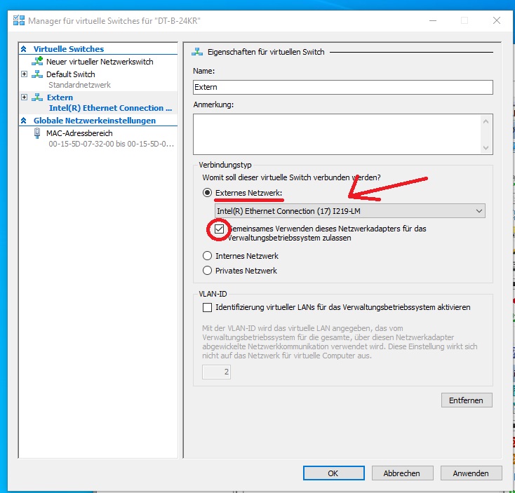 Hyper-V Anbindung ans Netzwerk